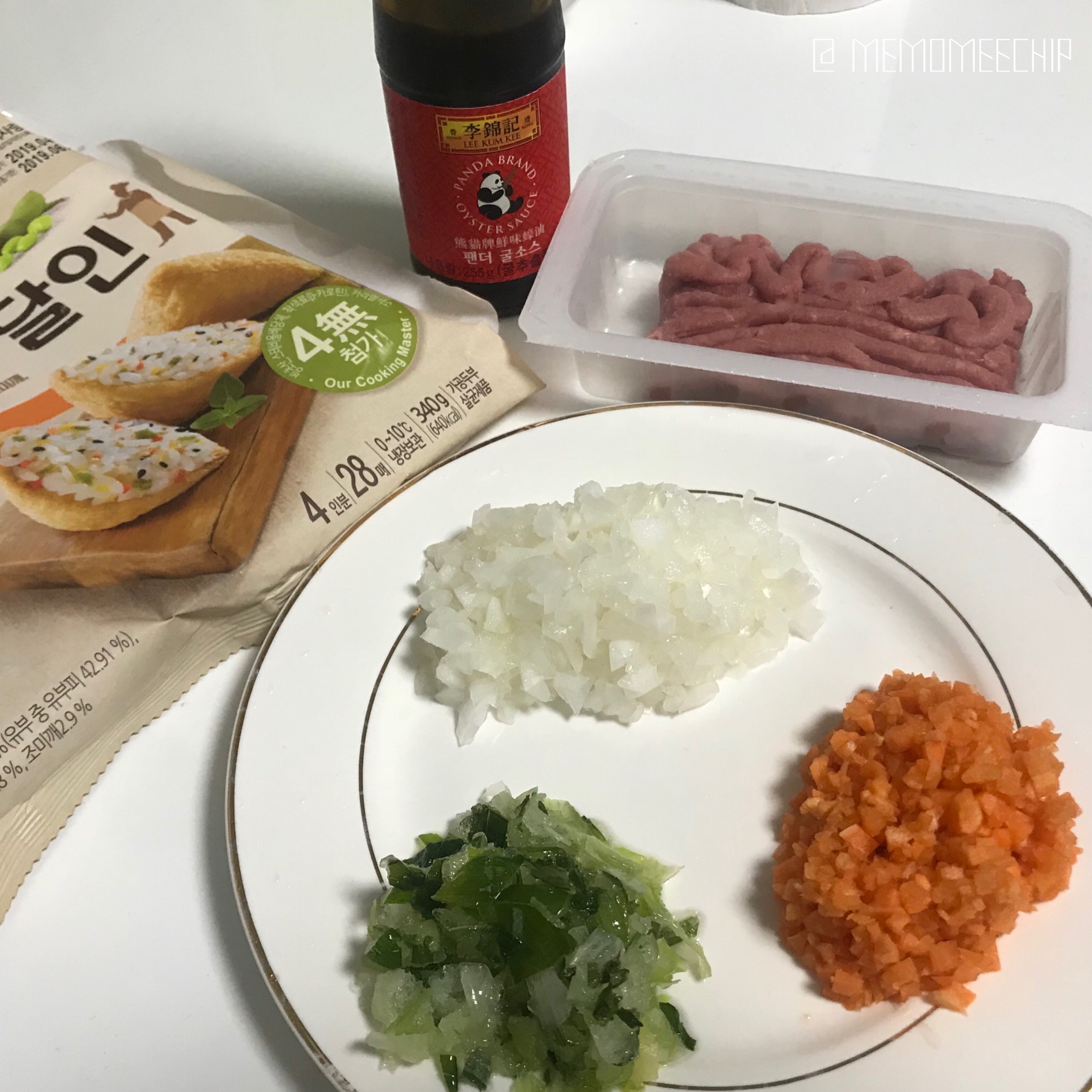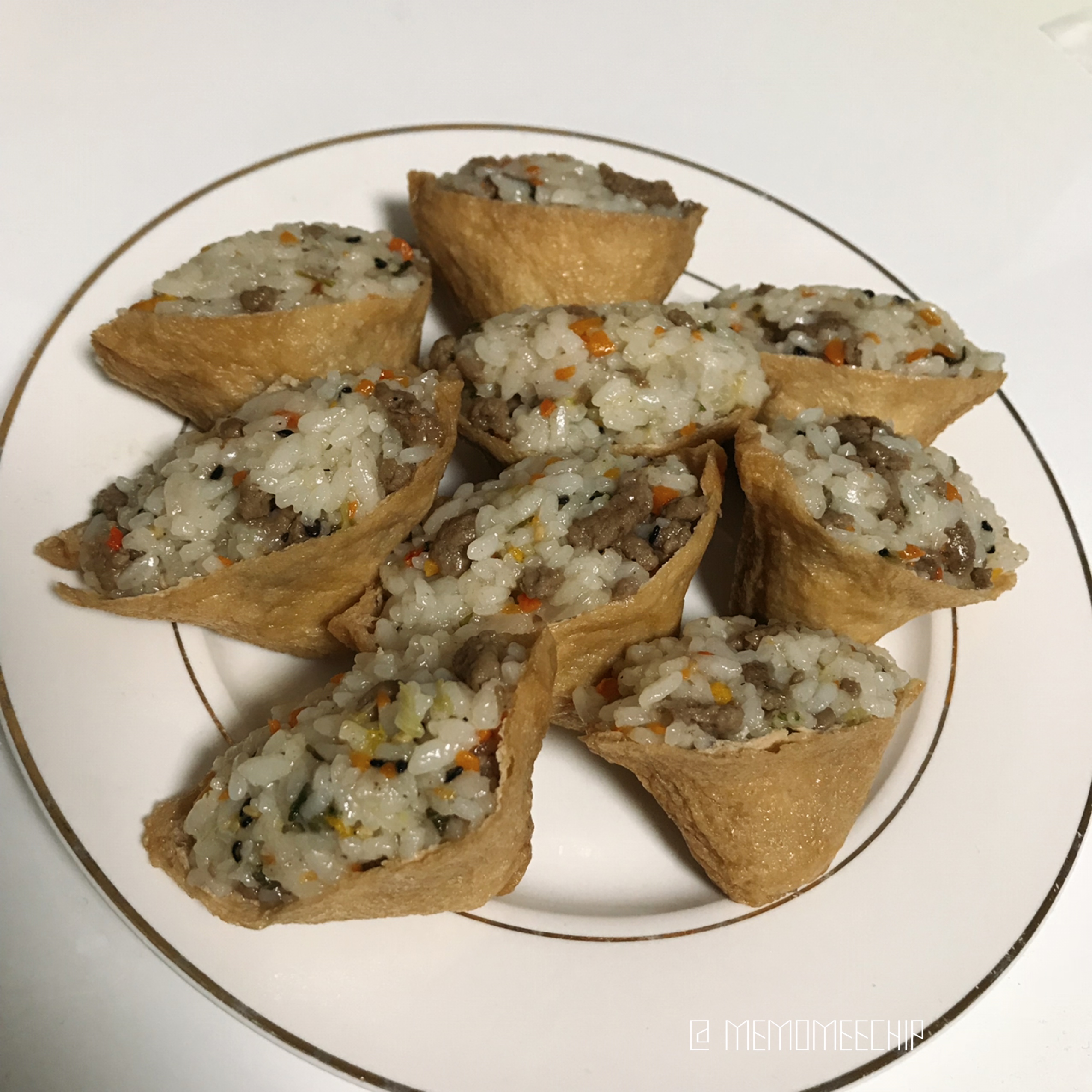 유부초밥 2인분 ┃ 밥 한 공기 반┃다진 소고기 ┃ 다진 양파 ┃ 다진 당근 ┃ 다진 파 ┃ 굴소스 ┃ 참기름┃소금 ┃ 후추