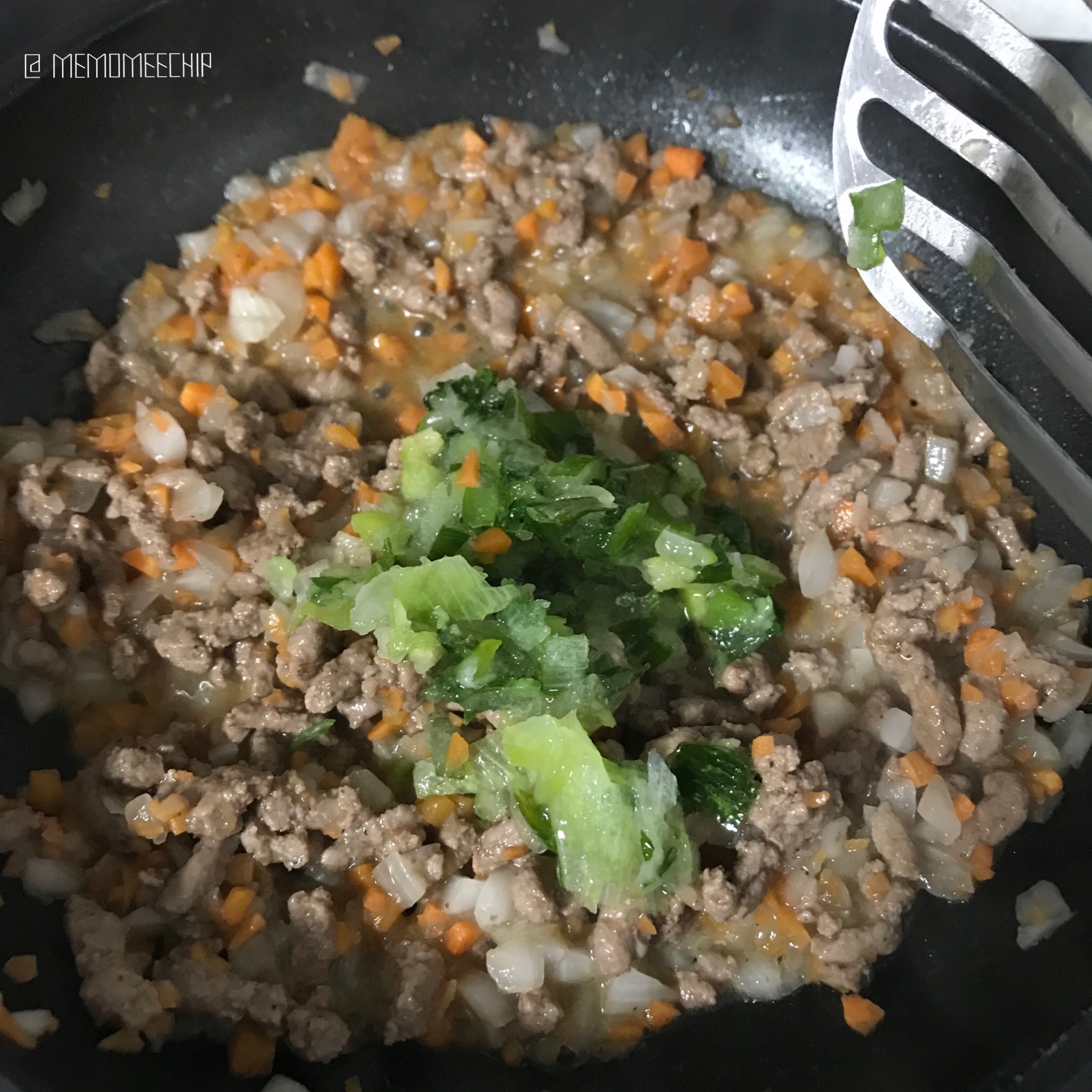 4. 어느 정도 익으면 다진 파를 넣어 볶아줍니다.