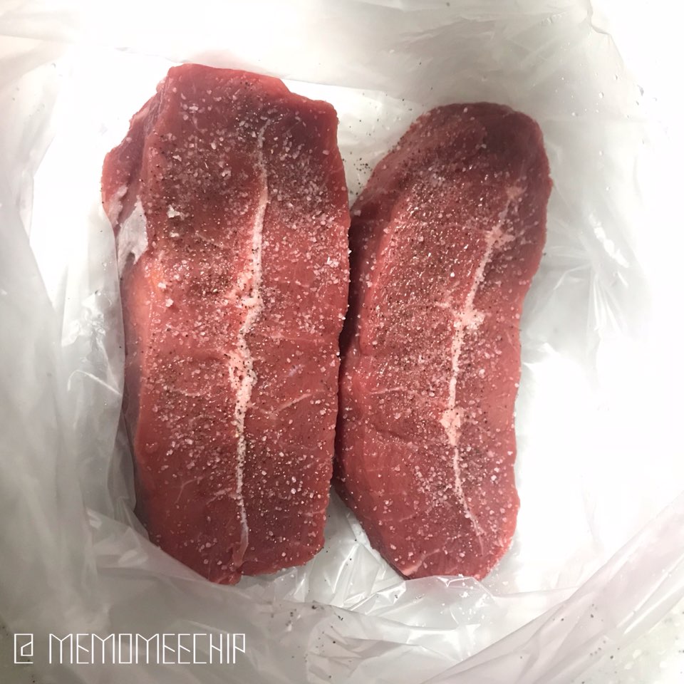 3. 소고기를 뒤집어서 똑같이 소금과 후추를 뿌려줍니다.