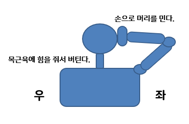 2)이 때 머리가 왼쪽으로 가지않도록 버텨서 오른쪽 목에 힘이 들어가도록 한다.