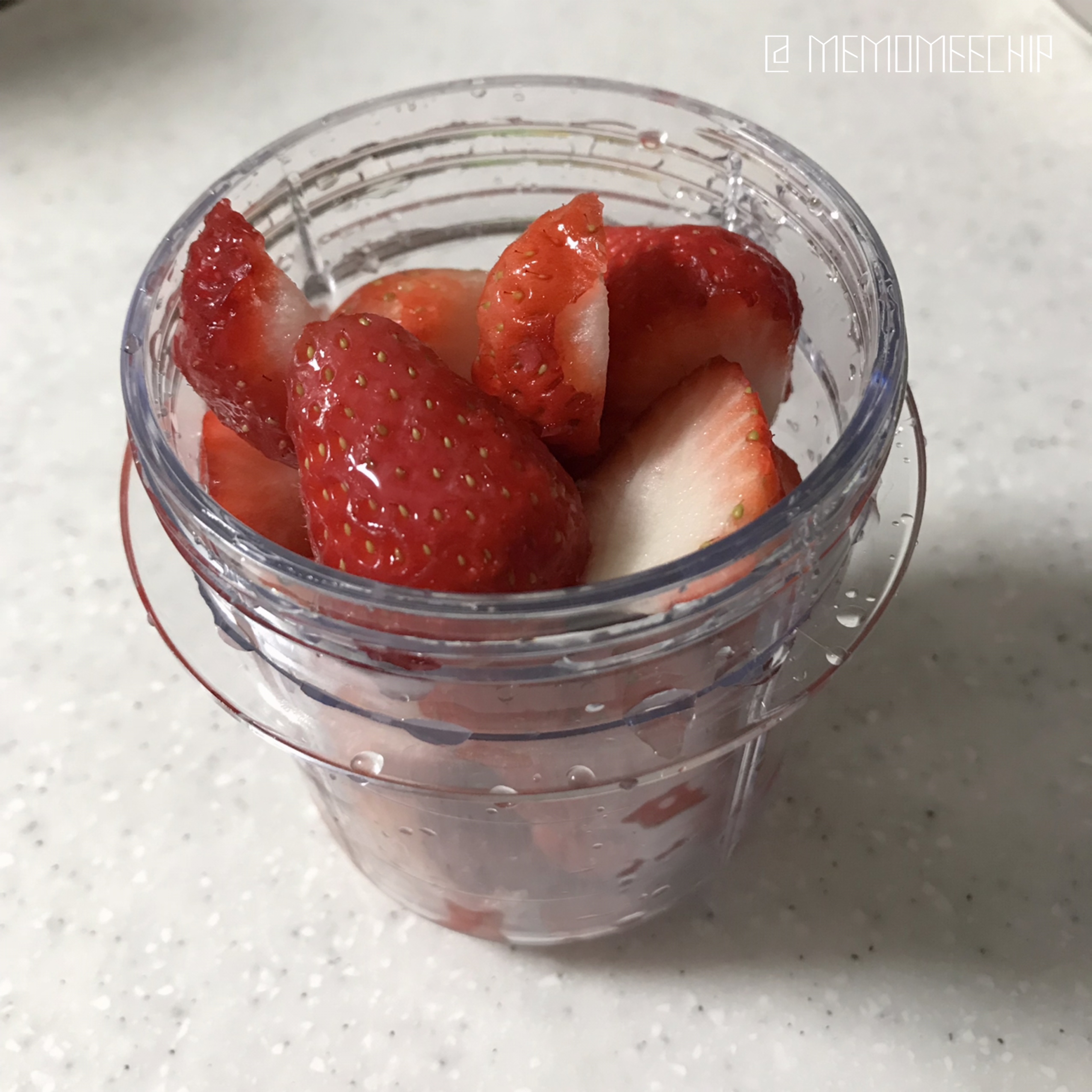 그래서 저는 생딸기우유를 사 먹지 않고 집에서 만들어 먹습니다.